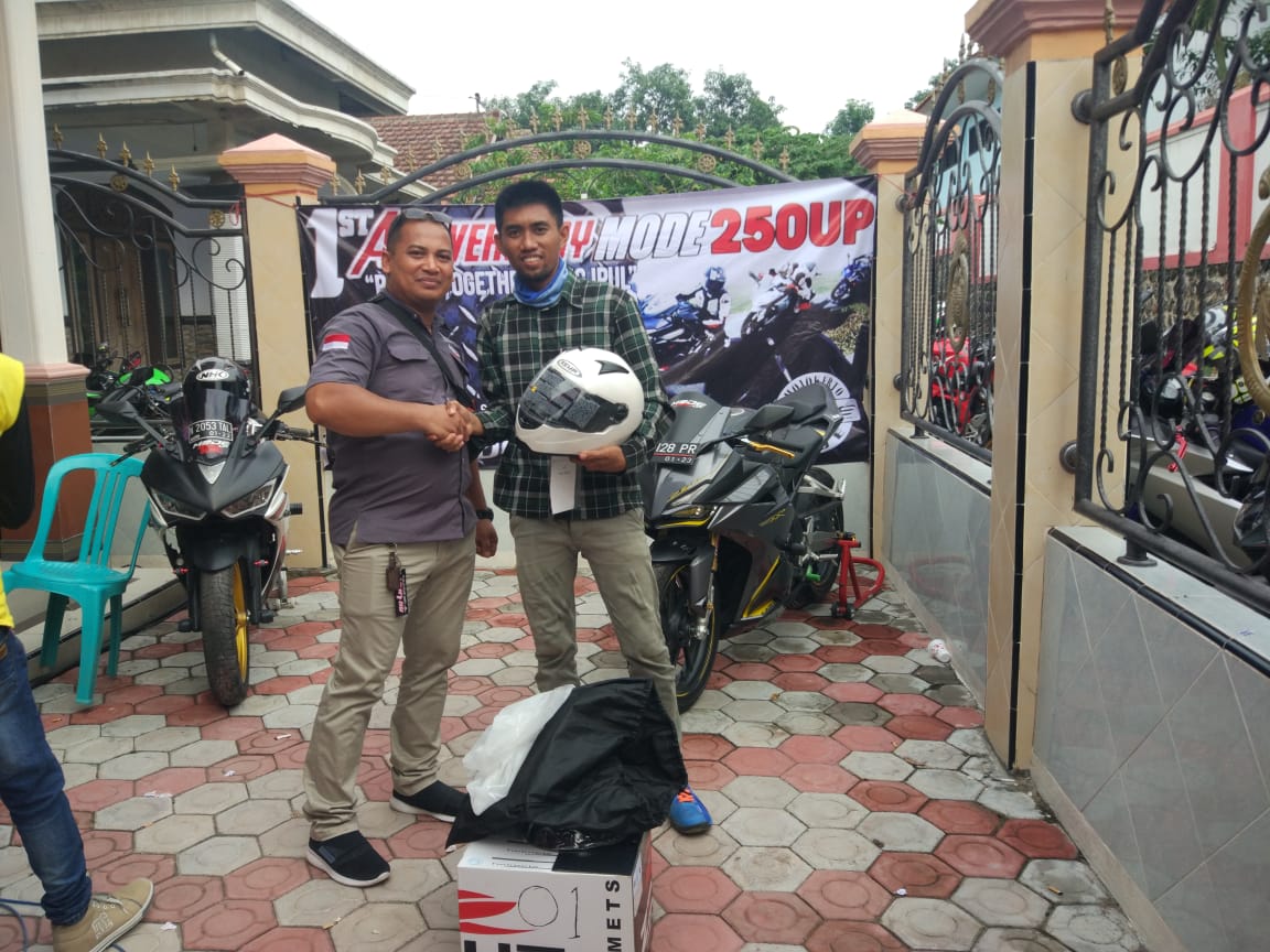 Penyerahan hadiah utama dari Eka Prima Motor. bang ipul menyerahkan hadiah kepada mas budi, selamat ya mas budi di pakai ya helmya , tambah keren deh hihihi....