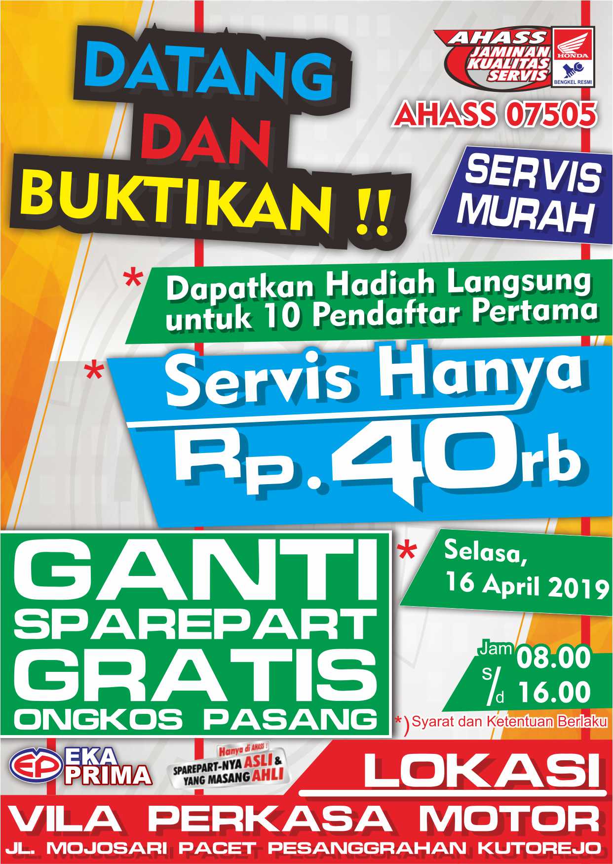 ekaprimagroup.com - hy sob, ini nih yang di tunggu-tunggu..... "servis murah" yaitu salah satu event ahass yang di adakan di pacet. tepatnya di jl. mojosari pacet kutorejo "VILA PERKASA . . .