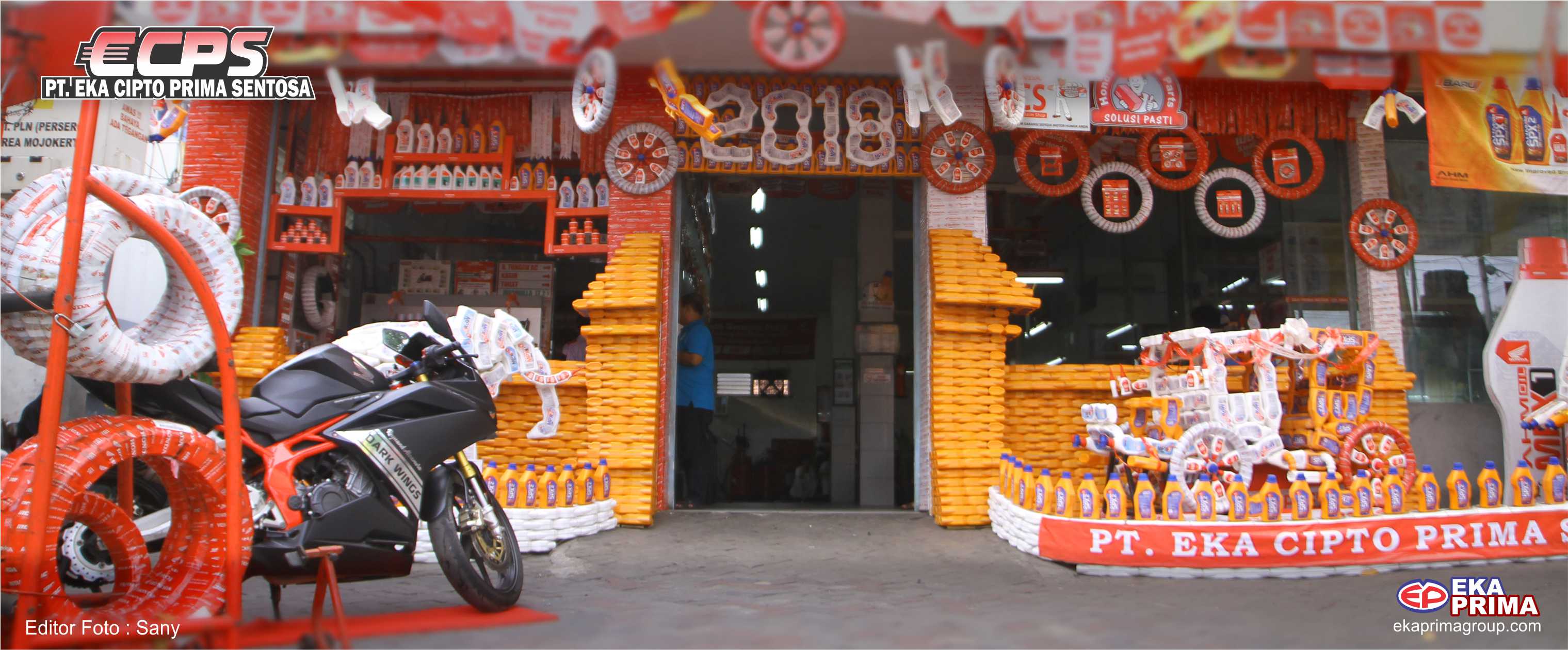 ekaprimagroup.com, Congrat !! Ahass 01946 Ahass Eka Prima Motor Mojokerto (ahass eka prima), atas prestasinya. berkat kerja keras dan kreatifitas para mekanik Ahass Eka Prima, membuahkan hasil manis sob. Display Contest dengan tema "Kereta Kencana Mojopahit" hasil karya Para Mekanik Ahass Eka Prima berhasil menduduki Juara Ke 3 tingkat Nasional. selain bengkel ahass tampak lebih menarik sob, konsumen yang lagi jenuh untuk menunggu kendaraannya yang swedang di servis, juga bisa menunggu sambil foto selfi sob. lebih asyik kan.